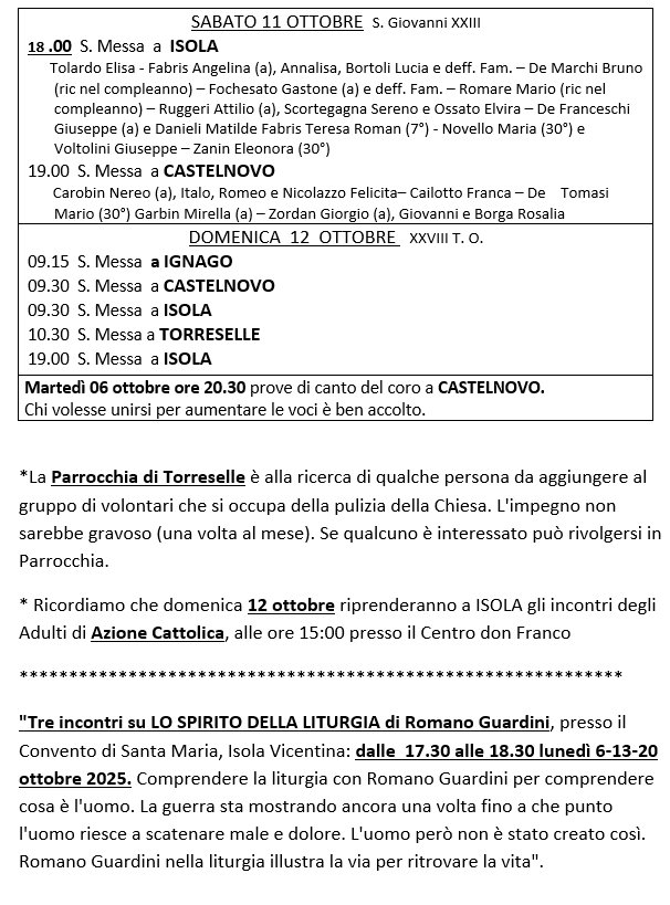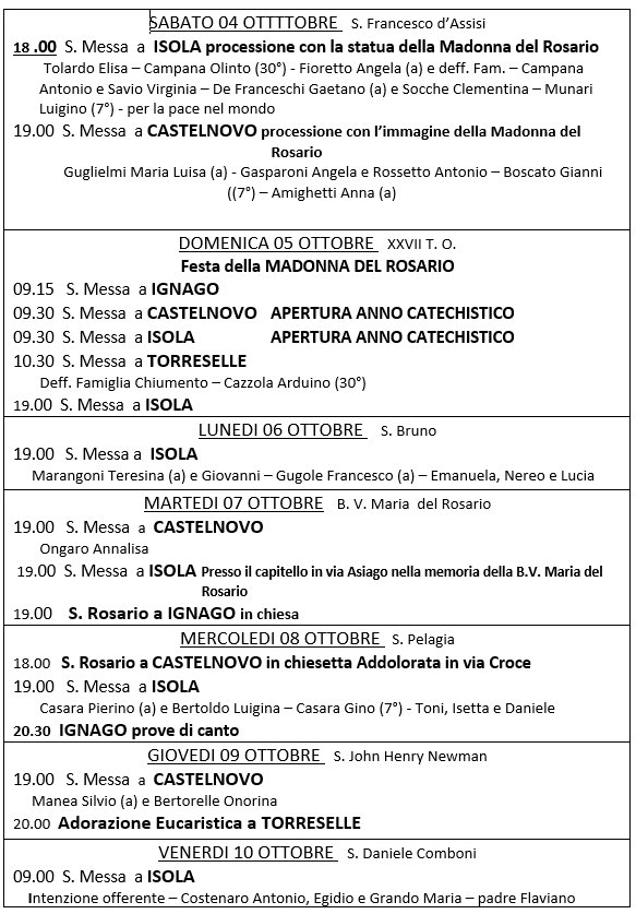 XXVII TEMPO ORDINARIO